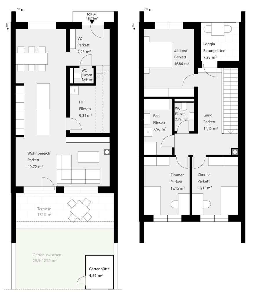 | Haus H | 135,78 m² | 17,13 m² | 7,28 m² | 29,45 m² | 1342,84 € | Vergeben |